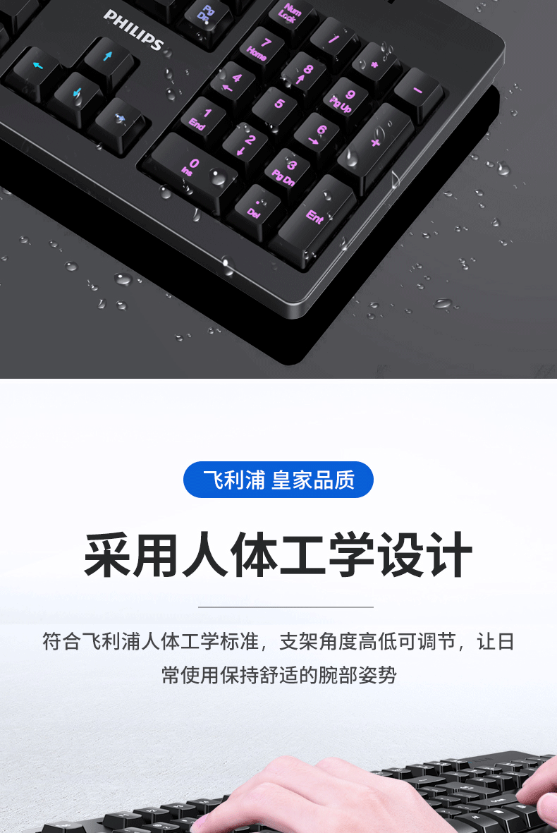 フィリップス(PHILIPS)有線キーボードマウスセット家庭用デスクトップパソコンUSBノートPCカフェ機械的手触りゲーム静音キーマウス黒(シングルキーボード)【写真価格ブランド見積】-